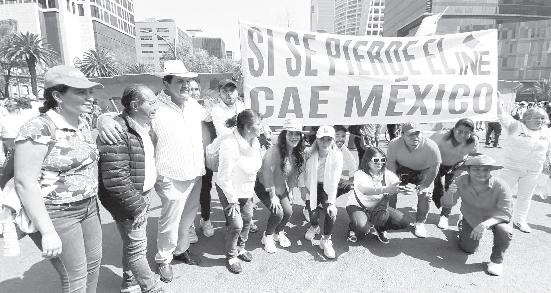 Desde el Ángel de la Independencia de la Ciudad de México, las y los manifestan tes marcharon hacia el Monumento a la Revolución para mostrar su postura en defensa del Instituto Nacional Electoral (INE), el cual consideran que se va a ver afectado con la Reforma Electoral, cuyo objetivo es sustituir al organismo por el Instituto Nacional de Elecciones y Con sulta (INEC), el cual reduciría de 11 a si ete el número de los consejeros que serán electos por voto popular.
