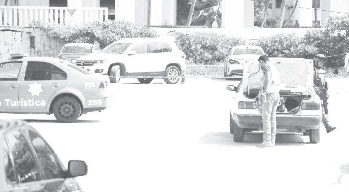 Policías y militares localizaron un arma calibre nueve milímetros y droga en una camioneta involucra da en los hechos dentro del esta cionamiento del hotel Calinda Beach del puerto.