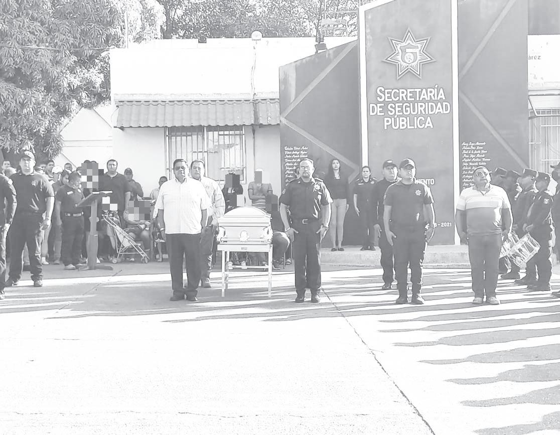 Tras los honores de cuerpo presente, el féretro del asesinado servidor público, partió el cortejo fúnebre de las instalaciones de la SSP, y sus restos fueron trasladados al panteón donde descansarán sus restos.
