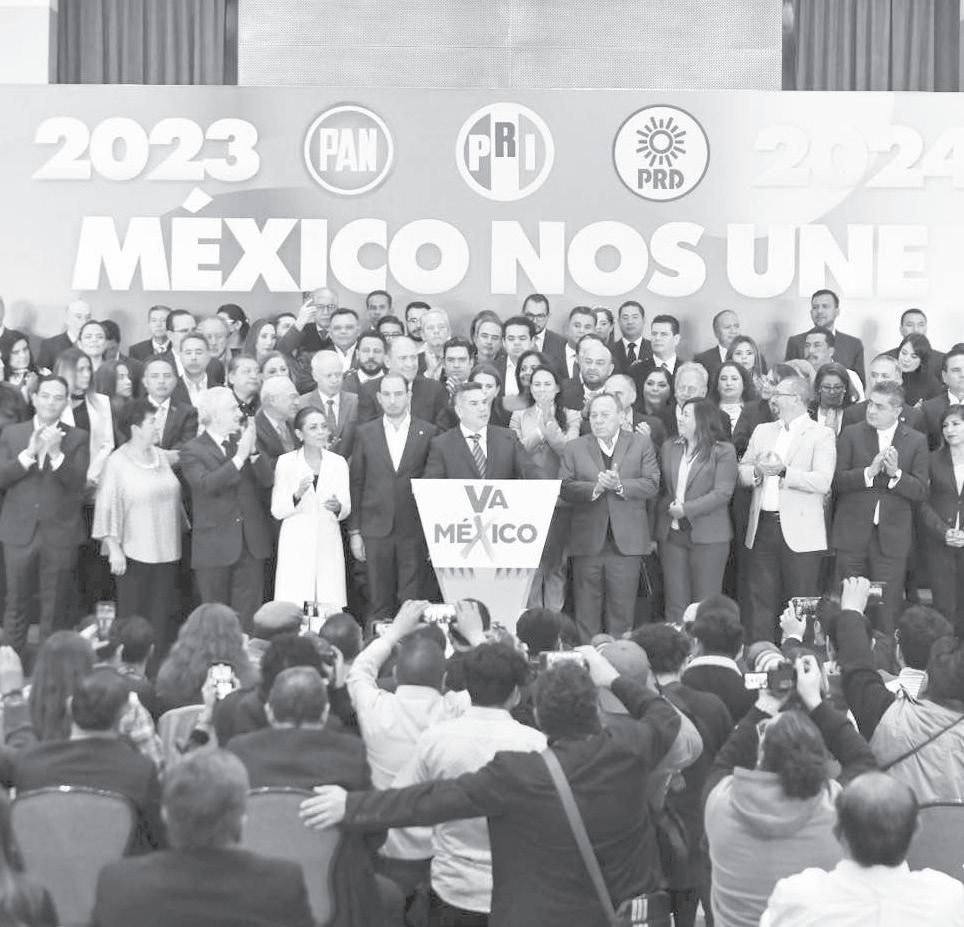 El anuncio fue hecho en un acto multitudinario por los dirigentes del PRI, Alejandro Moreno Cárdenas; del PAN, Marko Cortés; y del PRD, Jesús Zambrano, quienes acordaron formar un Bloque Legislativo en el Congreso de la Unión, que esté comprometido con el fortalecimiento democrático del país, participando con reglas claras y votos conjuntos, llevando una agenda legislativa común, votando a favor o en contra de iniciativas, según su importancia para el país, sin importar que se trate de temas de interés presidencial, incluyendo la elección de nuevos consejeros electorales.