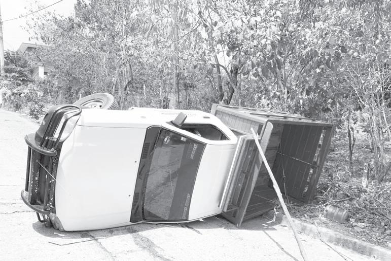 se en reversa, causando que se volcará y los garrafones se desparramaran.