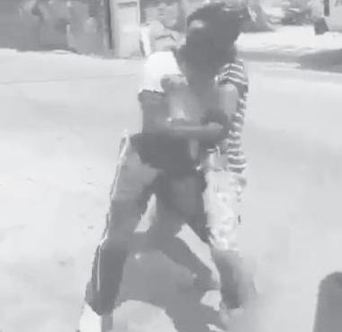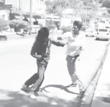 La agresión comienza cuando ambos jóvenes empiezan a empujarse y tirarse golpes, lue-