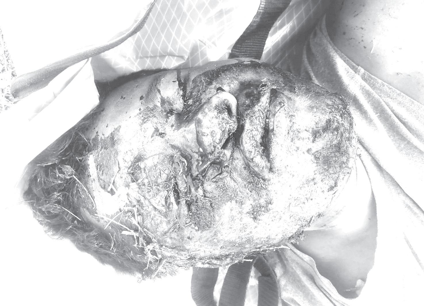 el lado izquierdo de la parte posterior de la cabeza, al parecer producida por arma de fuego.