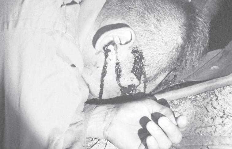 atadas hacia la espalda con un cordón blanco que tenía amarrado a su tobillo derecho. Además, se informó que en las rodillas tenía desprendimiento de la piel, como su hubiera sido sometido a torturas.