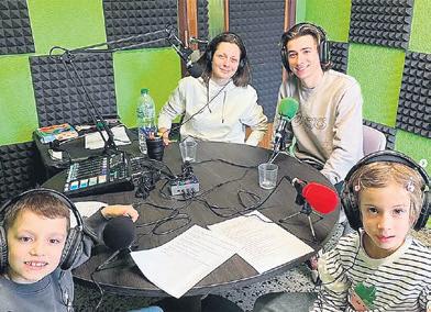 La familia González sobre el escenario de la Casa de Cultura de Ribadesella.