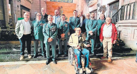 Los Guardias Civiles de Cangas de Onís celebraron el domingo a la patrona de la Benemérita, la Virgen del Pilar, como cada año con el uniforme de gala, que conserva el mítico tricornio, y asistiendo a misa de doce. En la imagen, guardias aún en ejercicio con otros ya jubilados.