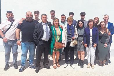 Roberto Noval, de traje y corbata, con su familia y representantes del Ayuntamiento de Sariego, entre ellos el alcalde, Saúl Bastián.