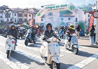 Invasión de Vespas Más de 150 Vespas y Lambrettas llegadas de media España participaron el sábado en la IV edición de la Vespicos, que organiza el Club Vespa Cangas de Onís. El pelotón arrancaba el sábado temprano de la plaza de la Iglesia de Cangas de Onís, ante la torre del Palaciu Pintu. El recorrido llevó a los “vespistas” por las reviradas carreteras del oriente asturianu y la vecina provincia de León, en torno al Parque Nacional de los Picos de Europa, casi 200 kilómetros, con diferentes paradas para disfrutar del paisaje. En Posada de Valdeón (Leoó) tenía lugar la comida de hermandad de todo el grupo.