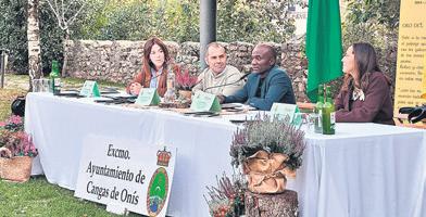 Mónica Gutiérrez, José Manuel G. Castro, Salvador Ondó y Salomé García, en la presentación que tuvo lugar en el Parque Riera de Cangas de Onís.