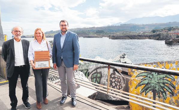 Desde el domingo pasado en el puerto de Llanes está colocada una placa en la que se puede leer “Dique presidente y alcalde, Antonio Trevín”. Así, poniendo su nombre en el puerto llanisco, una infraestructura por la que peleó Trevín en su etapa de alcalde, le rindió tributo el Gobierno del Principado de Asturias. En la foto está la viuda de Trevín, Luisa Lledías, con José Ibarrola, el hijo del artista vasco que dejó su huella en los Cubos de la Memoria, también de la mano de Trevín y el presidente del Principado, Adrián Barbón. Última página