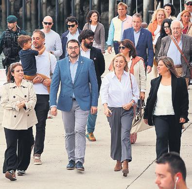 Adriana Lastra, Adrián Barbón, Luisa Lledías y Gimena Llamedo llegando al dique que ya lleva el nombre de Antonio Trevín.