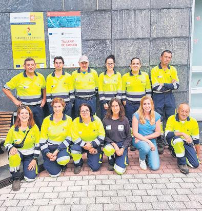 Reyes Ugalde, José Carlos García-Ramos, Pablo León, Esther Freile y José Ángel Toyos con los miembros del GREIM y las piezas rescatadas de los acantilados de Oles.