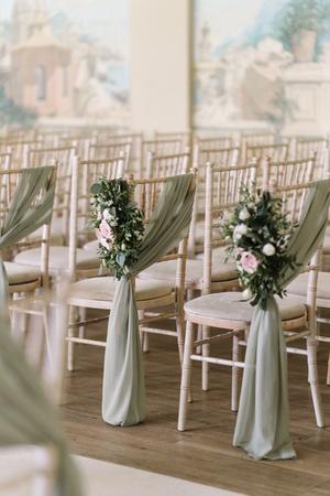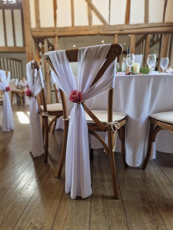 scattered aisle petals in your choice of colour up to 20 soft chiffon chair drapes on back of aisle chairs