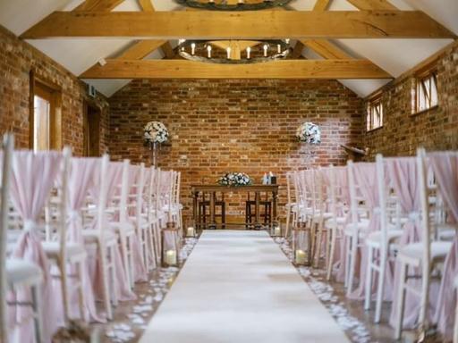 8 set of 3 cylinder vases with silk flowers and floating candles along the aisle heavy scattered aisle petals in your choice of colour up to 20 soft chiffon chair drapes on back of aisle chairs