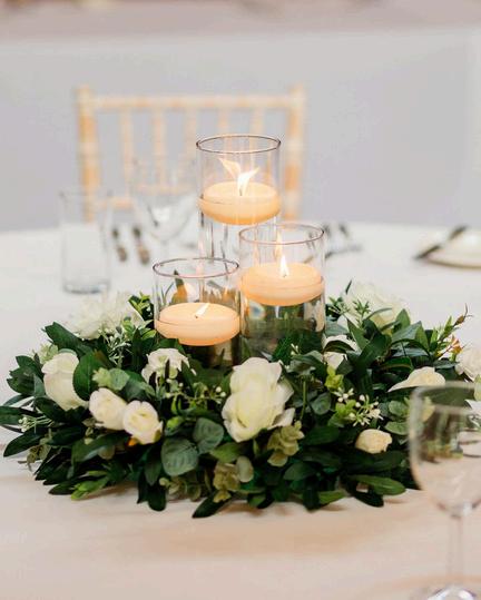 All wedding table centrepieces can be decorated to suit your style and colour palette and can include flower arrangements and candles We use high quality silk flowers, accredited by the British Floristry Association If you wish to have fresh flowers we can work with a trusted florist to complete the perfect combination that suits you