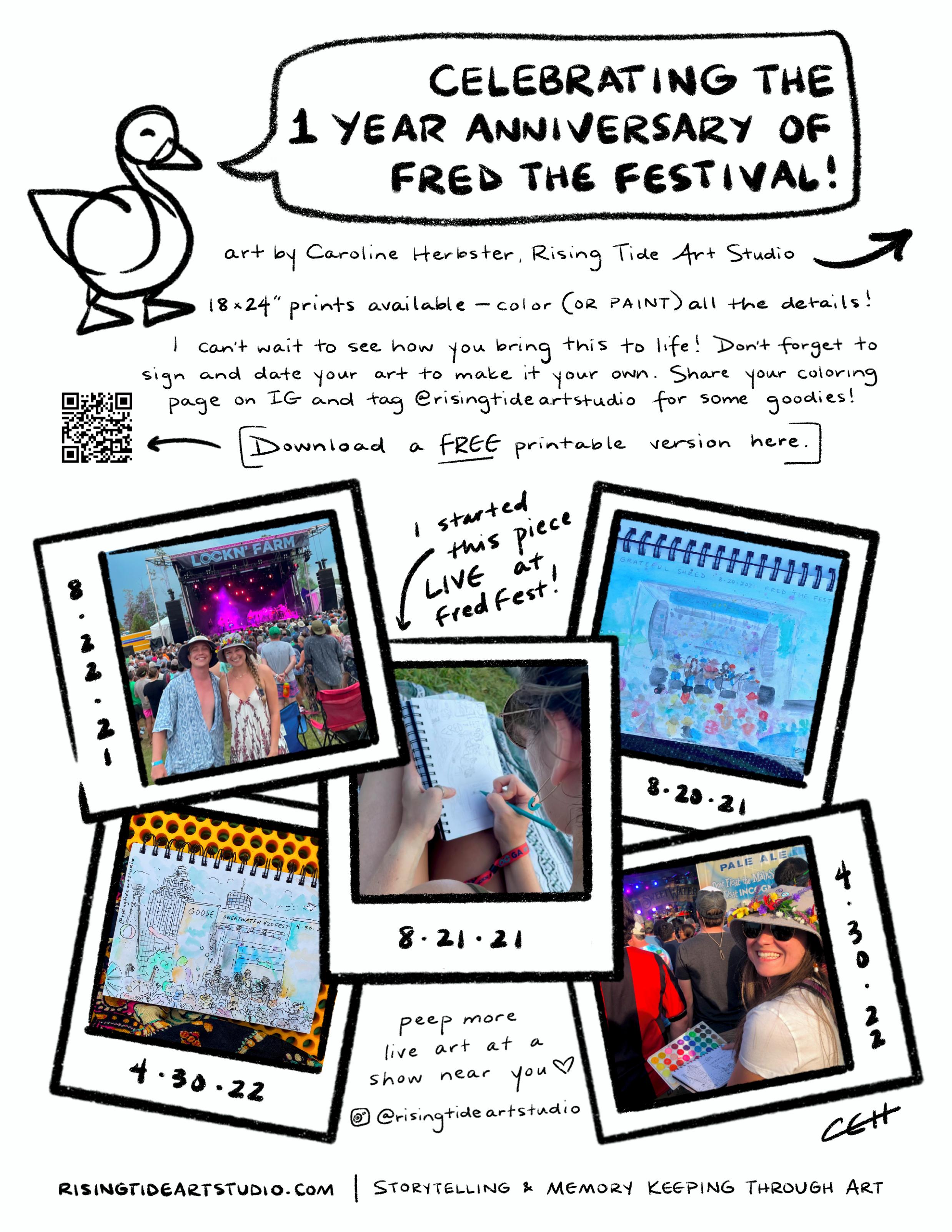 Pages10-11 Centerfold:FredtheFestivalOne-YearAnniversaryArtworkbyRisingTideArtStudio