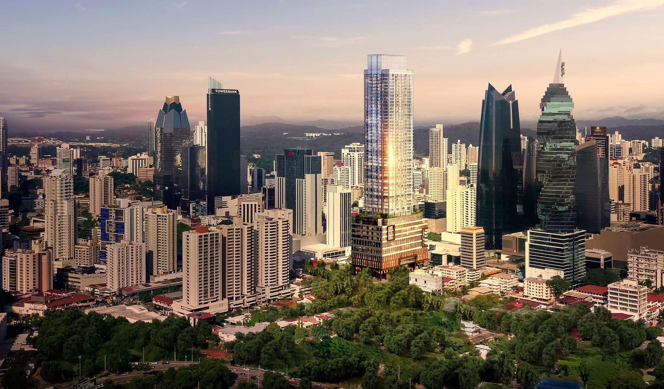 The arrangement of each two balconies is staggered horizontally, shaping the facade of the building to create a vertical urban forest system, linking nature to reach each unit.