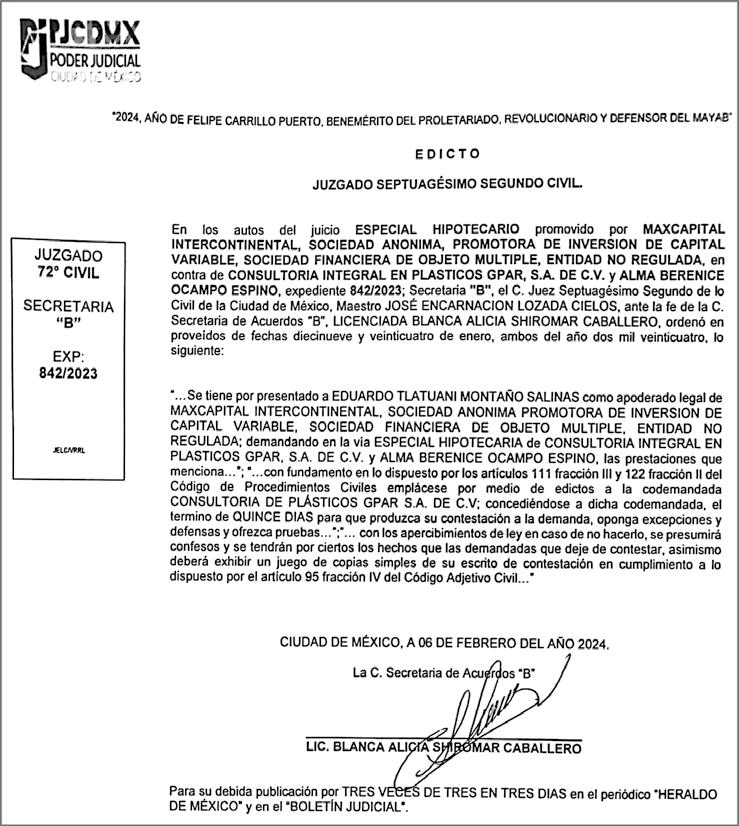 II S UPLEMENTO ¦ CÚPULA MARTES ¦ 05 ¦ 03 ¦ 2024 Diario El Heraldo de México. Editor responsable: Alfredo González Castro. Número de Certificado de Reserva otorgado por el Instituto Nacional del Derecho de Autor 04-2009-060419022100-101. Número de Certificado de Licitud de título y Contenido No.16921. Domicilio de la Publicación: Paseo de la Reforma No. 250, Piso 24, Colonia Juárez, Del. Cuauhtémoc, C.P. 06600, Ciudad de México. Impreso en Talleres de La Crónica Diaria S.A. de C. V. Calzada Azcapotzalco La Villa No. 160 Barrio San Marcos , Alcaldia Azcapotzalco, CP 02020. Publicación Diaria. Todos los derechos están reservados. Queda estrictamente prohibida la reproducción total o parcial de los contenidos e imágenes de esta publicación sin previa autorización de El Heraldo de México. El contenido de los artículos es responsabilidad exclusiva de los autores.