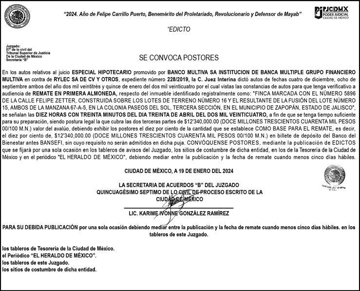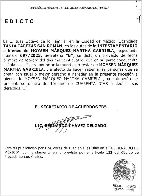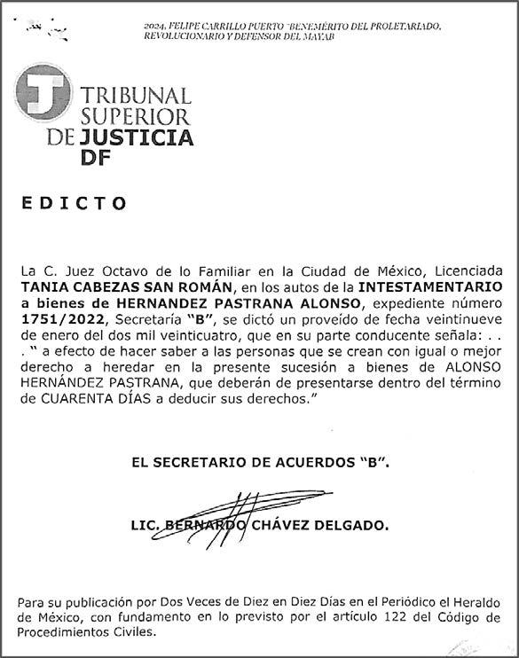 Diario El Heraldo de México. Editor responsable: Alfredo González Castro. Número de Certificado de Reserva otorgado por el Instituto Nacional del Derecho de Autor 04-2009060419022100-101. Número de Certificado de Licitud de título y Contenido No.16921. Domicilio de la Publicación: Paseo de la Reforma No. 250, Piso 24, Colonia Juárez, Del. Cuauhtémoc, C.P. 06600, Ciudad de México. Impreso en Talleres de La Crónica Diaria S.A. de C. V. Calzada Azcapotzalco La Villa No. 160 Barrio San Marcos Alcaldia Azcapotzalco, CP 02020 Publicación Diaria. Todos los derechos están reservados. Queda estrictamente prohibida la reproducción total o parcial de los contenidos e imágenes de esta publicación sin previa autorización de El Heraldo de México. El contenido de los artículos es responsabilidad exclusiva de los autores. MARÍA CRISTINA MIERES ZIMMERMANN VICEPRESIDENTA DE DESARROLLO SOCIAL Y CULTURAL