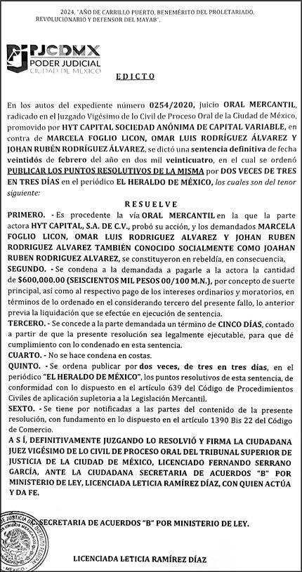 MARTES 12 / 03 / 2024 WWW.HERALDODEMEXICO.COM.MX Sacapuntas Diario El Heraldo de México. Editor responsable: Alfredo González Castro. Número de Certificado de Reserva otorgado por el Instituto Nacional del Derecho de Autor 04-2009-060419022100-101. Número de Certificado de Licitud de título y Contenido No.16921. Domicilio de la Publicación: Paseo de la Reforma No. 250, Piso 24, Colonia Juárez, Del. Cuauhtémoc, C.P. 06600, Ciudad de México. Imprenta: Impreso en Talleres de La Crónica Diaria , S.A. de C. V. Calzada Azcapotzalco La Villa No. 160 , Barrio San Marcos Alcaldia Azcapotzalco, CP 02020. Publicación Diaria. Todos los derechos están reservados. Queda estrictamente prohibida la reproducción total o parcial de los contenidos e imágenes de esta publicación sin previa autorización de El Heraldo de México. El contenido de los artículos es responsabilidad exclusiva de los autores. ANGEL MIERES ZIMMERMANN PRESIDENTE DEL CONSEJO DE ADMINISTRACIÓN MARÍA CRISTINA MIERES ZIMMERMANN VICEPRESIDENTA DE DESARROLLO CULTURAL Y SOCIAL ANTONIO HOLGUIN ACOSTA VICEPRESIDENTE DE RELACIONES INSTITUCIONALES FRANCO CARREÑO OSORIO DIRECTOR GENERAL ADRIÁN PALMA ARVIZU DIRECTOR CREATIVO adrian@elheraldodemexico.com ARMANDO KASSIAN DIRECTOR DIGITAL armando.kassian@elheraldodemexico.com JUAN CARLOS CELAYETA DIR. COMERCIAL Y RELACIONES INSTITUCIONALES juan@elheraldodemexico.com JORGE ALMARAZ LÓPEZ EDITOR GENERAL jorge@elheraldodemexico.com IVÁN RAMÍREZ VILLATORO EDITOR EN JEFE ivan@elheraldodemexico.com RAYMUNDO SÁNCHEZ PATLÁN SUBDIRECTOR EDITORIAL raymundo@elheraldodemexico.com ANDREA MERLOS LÓPEZ DIRECTORA HERALDO TELEVISIÓN andrea@elheraldodemexico.com RAFAELA KASSIAN MIERES DIRECTORA SOFT NEWS / GASTROLAB ALFREDO GONZÁLEZ CASTRO DIRECTOR EDITORIAL ADRIÁN LARIS CASAS DIRECTOR HERALDO RADIO adrian.laris@elheraldodemexico.com FRANCISCO NIETO BALBINO EDITOR PAÍS / CDMX / SAMUEL RUBÉN OCAMPO BRITO EDITOR EDOMEX / EDOS /JOSÉ CARREÑO FIGUERAS EDITOR ORBE / ALIDA PIÑÓN EDITORA ARTES Y CÚPULA / NAYELY RAMÍREZ MAYA EDITORA ESCENA / MIRIAM LIRA PACHECO EDITORA GASTROLAB Y ESCAPADA H / AILEDD MENDUET HUERTA EDITORA PANORAMA / DANIELA MICHELINE ZAMBRANO CADENA EDITORA MENTE MUJER / HÉCTOR JUÁREZ CEDILLO EDITOR META