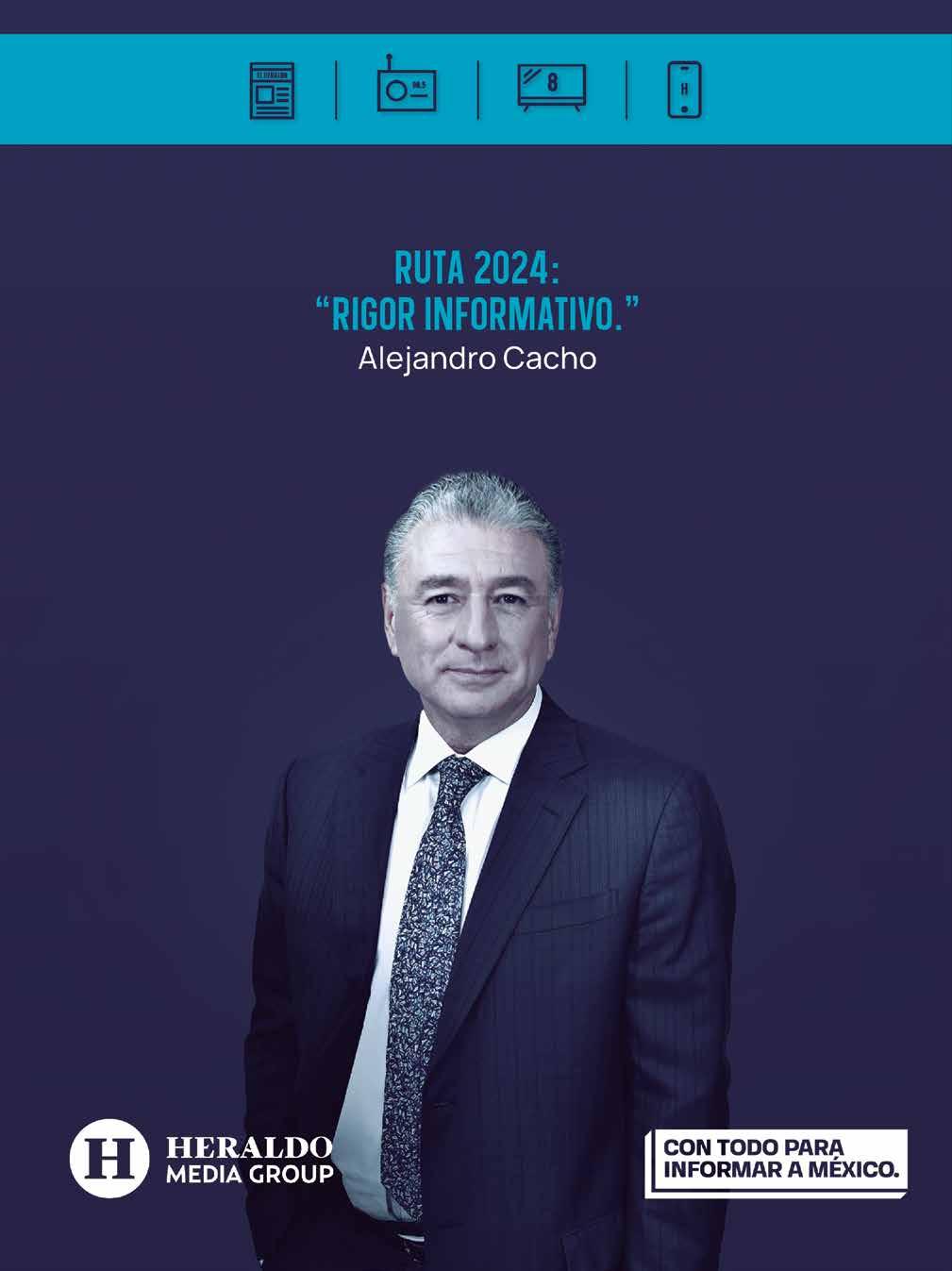 LUNES 18 / 03 / 2024 WWW.HERALDODEMEXICO.COM.MX Sacapuntas Diario El Heraldo de México. Editor responsable: Alfredo González Castro. Número de Certificado de Reserva otorgado por el Instituto Nacional del Derecho de Autor 04-2009-060419022100-101. Número de Certificado de Licitud de título y Contenido No.16921. Domicilio de la Publicación: Paseo de la Reforma No. 250, Piso 24, Colonia Juárez, Del. Cuauhtémoc, C.P. 06600, Ciudad de México. Imprenta: Impreso en Talleres de La Crónica Diaria , S.A. de C. V. Calzada Azcapotzalco La Villa No. 160 , Barrio San Marcos Alcaldia Azcapotzalco, CP 02020. Publicación Diaria. Todos los derechos están reservados. Queda estrictamente prohibida la reproducción total o parcial de los contenidos e imágenes de esta publicación sin previa autorización de El Heraldo de México. El contenido de los artículos es responsabilidad exclusiva de los autores. ANGEL MIERES ZIMMERMANN PRESIDENTE DEL CONSEJO DE ADMINISTRACIÓN MARÍA CRISTINA MIERES ZIMMERMANN VICEPRESIDENTA DE DESARROLLO CULTURAL Y SOCIAL ANTONIO HOLGUIN ACOSTA VICEPRESIDENTE DE RELACIONES INSTITUCIONALES FRANCO CARREÑO OSORIO DIRECTOR GENERAL ADRIÁN PALMA ARVIZU DIRECTOR CREATIVO adrian@elheraldodemexico.com ARMANDO KASSIAN DIRECTOR DIGITAL armando.kassian@elheraldodemexico.com JUAN CARLOS CELAYETA DIR. COMERCIAL Y RELACIONES INSTITUCIONALES juan@elheraldodemexico.com JORGE ALMARAZ LÓPEZ EDITOR GENERAL jorge@elheraldodemexico.com IVÁN RAMÍREZ VILLATORO EDITOR EN JEFE ivan@elheraldodemexico.com RAYMUNDO SÁNCHEZ PATLÁN SUBDIRECTOR EDITORIAL raymundo@elheraldodemexico.com ANDREA MERLOS LÓPEZ DIRECTORA HERALDO TELEVISIÓN andrea@elheraldodemexico.com RAFAELA KASSIAN MIERES DIRECTORA SOFT NEWS / GASTROLAB ALFREDO GONZÁLEZ CASTRO DIRECTOR EDITORIAL ADRIÁN LARIS CASAS DIRECTOR HERALDO RADIO adrian.laris@elheraldodemexico.com FRANCISCO NIETO BALBINO EDITOR PAÍS / CDMX / SAMUEL RUBÉN OCAMPO BRITO EDITOR EDOMEX / EDOS /JOSÉ CARREÑO FIGUERAS EDITOR ORBE / ALIDA PIÑÓN EDITORA ARTES Y CÚPULA / NAYELY RAMÍREZ MAYA EDITORA ESCENA / MIRIAM LIRA PACHECO EDITORA GASTROLAB Y ESCAPADA H / AILEDD MENDUET HUERTA EDITORA PANORAMA / DANIELA MICHELINE ZAMBRANO CADENA EDITORA MENTE MUJER / HÉCTOR JUÁREZ CEDILLO EDITOR META