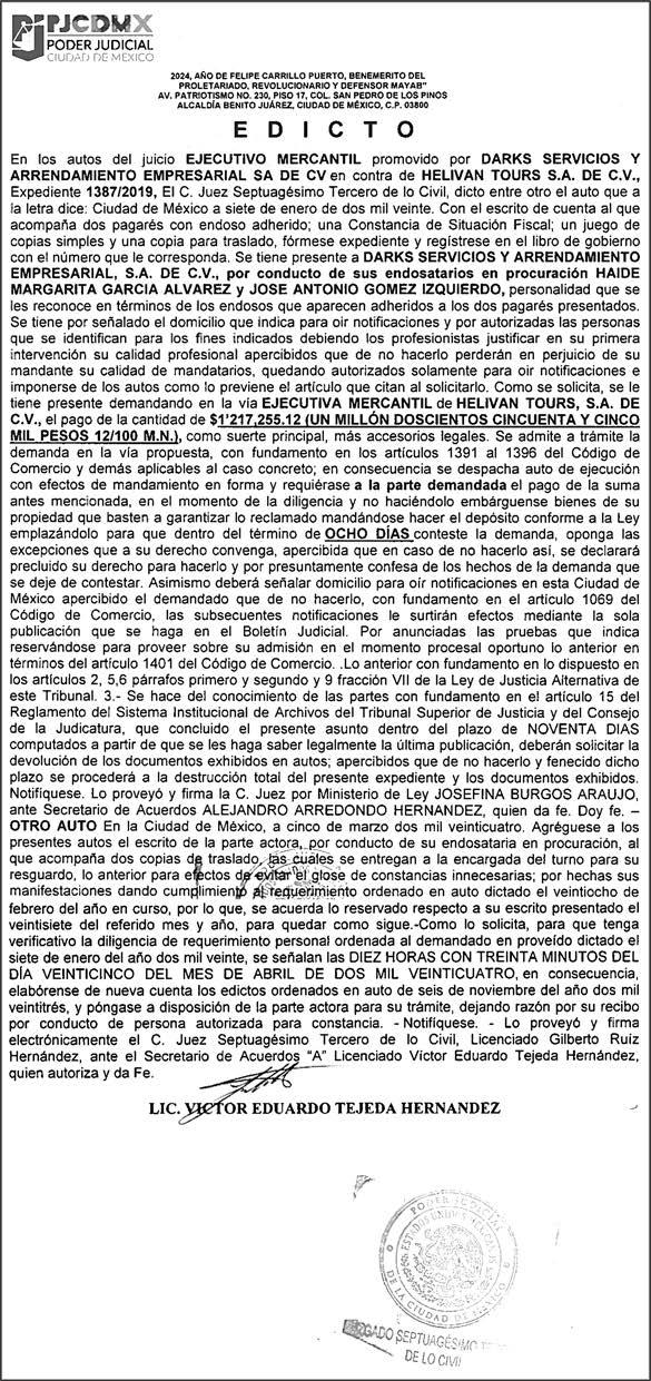 Diario El Heraldo de México. Editor responsable: Alfredo González Castro. Número de Certificado de Reserva otorgado por el Instituto Nacional del Derecho de Autor 04-2009-060419022100-101. Número de Certificado de Licitud de título y Contenido No.16921. Domicilio de la Publicación: Paseo de la Reforma No. 250, Piso 24, Colonia Juárez, Del. Cuauhtémoc, C.P. 06600, Ciudad de México. Imprenta: Impreso en Talleres de La Crónica Diaria , S.A. de C. V. Calzada Azcapotzalco La Villa No. 160 , Barrio San Marcos Alcaldia Azcapotzalco, CP 02020. Publicación Diaria. Todos los derechos están reservados. Queda estrictamente prohibida la reproducción total o parcial de los contenidos e imágenes de esta publicación sin previa autorización de El Heraldo de México. El contenido de los artículos es responsabilidad exclusiva de los autores. ANGEL MIERES ZIMMERMANN PRESIDENTE DEL CONSEJO DE ADMINISTRACIÓN MARÍA CRISTINA MIERES ZIMMERMANN VICEPRESIDENTA DE DESARROLLO CULTURAL Y SOCIAL ANTONIO HOLGUIN ACOSTA VICEPRESIDENTE DE RELACIONES INSTITUCIONALES FRANCO CARREÑO OSORIO DIRECTOR GENERAL ADRIÁN PALMA ARVIZU DIRECTOR CREATIVO adrian@elheraldodemexico.com ARMANDO KASSIAN DIRECTOR DIGITAL armando.kassian@elheraldodemexico.com JUAN CARLOS CELAYETA DIR. COMERCIAL Y RELACIONES INSTITUCIONALES juan@elheraldodemexico.com JORGE ALMARAZ LÓPEZ EDITOR GENERAL jorge@elheraldodemexico.com IVÁN RAMÍREZ VILLATORO EDITOR EN JEFE ivan@elheraldodemexico.com RAYMUNDO SÁNCHEZ PATLÁN SUBDIRECTOR EDITORIAL raymundo@elheraldodemexico.com ANDREA MERLOS LÓPEZ DIRECTORA HERALDO TELEVISIÓN andrea@elheraldodemexico.com RAFAELA KASSIAN MIERES DIRECTORA SOFT NEWS / GASTROLAB ALFREDO GONZÁLEZ CASTRO DIRECTOR EDITORIAL ADRIÁN LARIS CASAS DIRECTOR HERALDO RADIO adrian.laris@elheraldodemexico.com FRANCISCO NIETO BALBINO EDITOR PAÍS / CDMX / SAMUEL RUBÉN OCAMPO BRITO EDITOR EDOMEX / EDOS /JOSÉ CARREÑO FIGUERAS EDITOR ORBE / ALIDA PIÑÓN EDITORA ARTES Y CÚPULA / NAYELY RAMÍREZ MAYA EDITORA ESCENA / MIRIAM LIRA PACHECO EDITORA GASTROLAB Y ESCAPADA H / AILEDD MENDUET HUERTA EDITORA PANORAMA / DANIELA MICHELINE ZAMBRANO CADENA EDITORA MENTE MUJER / HÉCTOR JUÁREZ CEDILLO EDITOR META