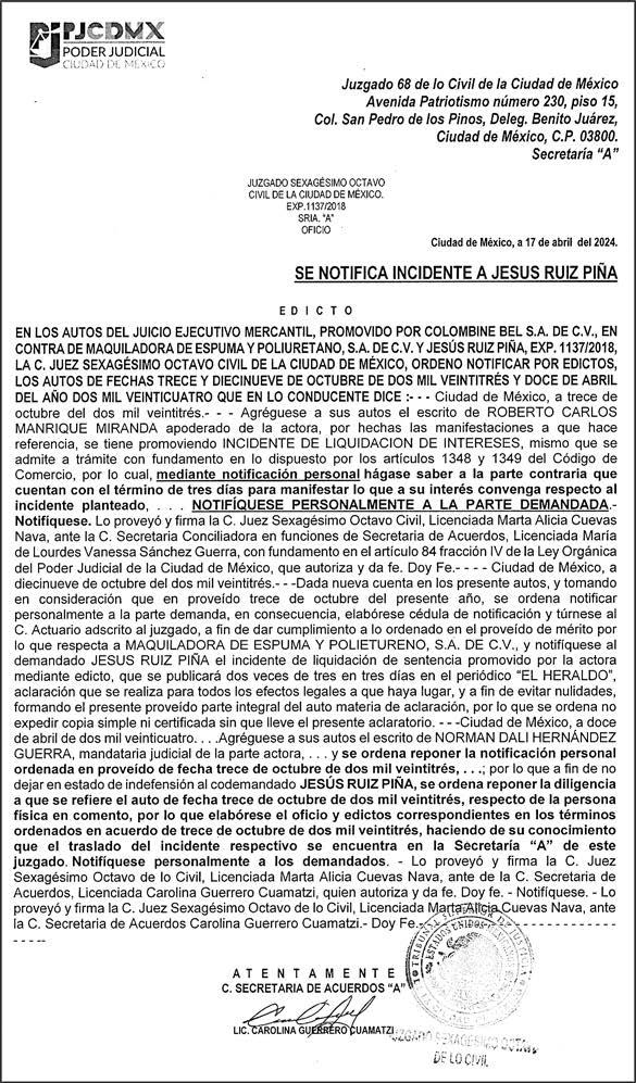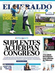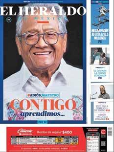 Diario El Heraldo de México. Editor responsable: Alfredo González Castro. Número de Certificado de Reserva otorgado por el Instituto Nacional del Derecho de Autor 04-2009060419022100-101. Número de Certificado de Licitud de título y Contenido No.16921. Domicilio de la Publicación: Paseo de la Reforma No. 250, Piso 24, Colonia Juárez, Del. Cuauhtémoc, C.P. 06600, Ciudad de México. Impreso en Talleres de La Crónica Diaria , S.A. de C. V. Calzada Azcapotzalco La Villa No. 160 Barrio San Marcos Alcaldia Azcapotzalco, CP 02020 Publicación Diaria. Todos los derechos están reservados. Queda estrictamente prohibida la reproducción total o parcial de los contenidos e imágenes de esta publicación sin previa autorización de El Heraldo de México. El contenido de los artículos es responsabilidad exclusiva de los autores.