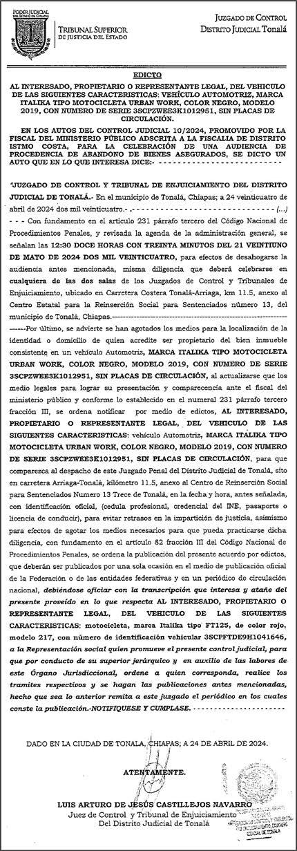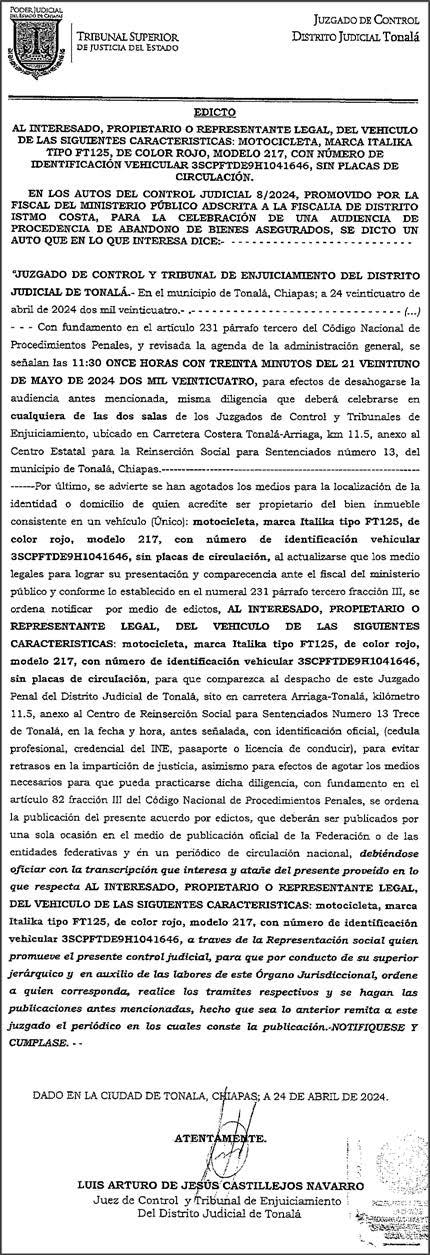 l El 8 de abril tuvo que ser hospitalizado; el día 26 del mismo mes se hizo la denuncia.