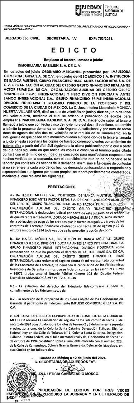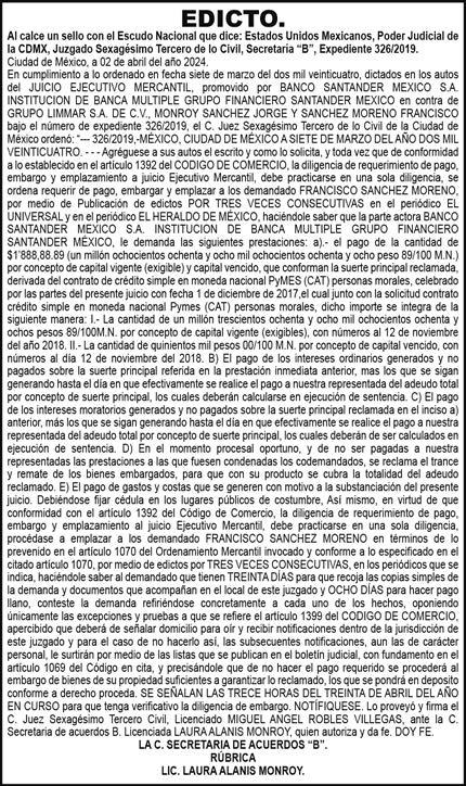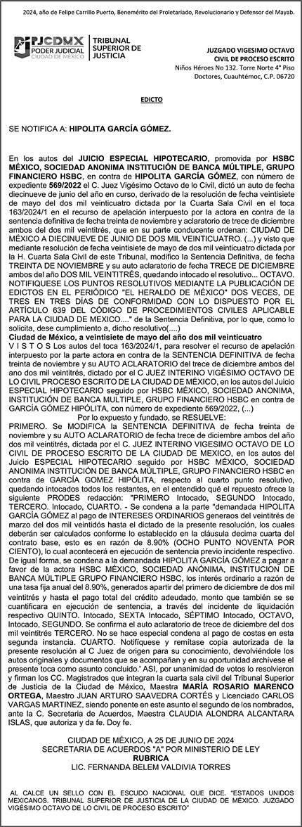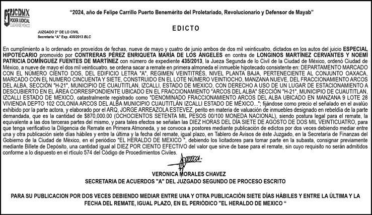 Diario El Heraldo de México. Editor responsable: Alfredo González Castro. Número de Certificado de Reserva otorgado por el Instituto Nacional del Derecho de Autor 04-2009-060419022100-101. Número de Certificado de Licitud de título y Contenido No.16921. Domicilio de la Publicación: Paseo de la Reforma No. 250, Piso 24, Colonia Juárez, Del. Cuauhtémoc, C.P. 06600, Ciudad de México. Impreso en Talleres de La Crónica Diaria S.A. de C. V. Calzada Azcapotzalco La Villa No. 160 Barrio San Marcos , Alcaldia Azcapotzalco, CP 02020. Publicación Diaria. Todos los derechos están reservados. Queda estrictamente prohibida la reproducción total o parcial de los contenidos e imágenes de esta publicación sin previa autorización de El Heraldo de México. El contenido de los artículos es responsabilidad exclusiva de los autores.