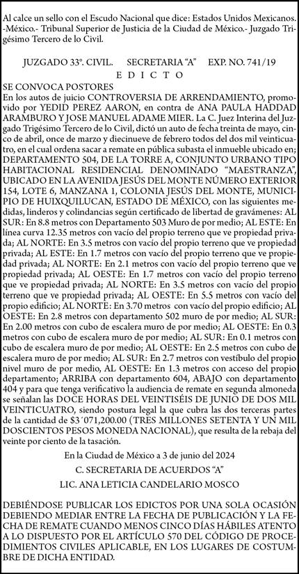 Diario El Heraldo de México. Editor responsable: Alfredo González Castro. Número de Certificado de Reserva otorgado por el Instituto Nacional del Derecho de Autor 04-2009-060419022100-101. Número de Certificado de Licitud de título y Contenido No.16921. Domicilio de la Publicación: Paseo de la Reforma No. 250, Piso 24, Colonia Juárez, Del. Cuauhtémoc, C.P. 06600, Ciudad de México. Impreso en Talleres de La Crónica Diaria S.A. de C. V. Calzada Azcapotzalco La Villa No. 160 Barrio San Marcos , Alcaldia Azcapotzalco, CP 02020. Publicación Diaria. Todos los derechos están reservados. Queda estrictamente prohibida la reproducción total o parcial de los contenidos e imágenes de esta publicación sin previa autorización de El Heraldo de México. El contenido de los artículos es responsabilidad exclusiva de los autores.