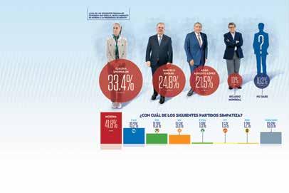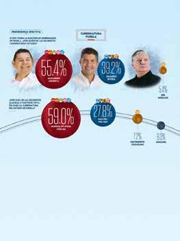 estadodeMorelos?”.PorMorena-PT-PVEM 51.6porciento decólasmilpersonasencuestadasindiquequevotaríanporellos,mientras por PAN-PRI-PRD-RSP lo haría38porciento. partidoEl9.2porcientovotaríaporel Movimiento Ciudadano. Larespuesta“Ninguno”obtuvo 1.2porciento. morelensesAdemásdelagubernatura,los renovarán33presi- denciasmunicipales eigualnúnuevemerodesindicaturas,ademásde diputadosfederales.Unode esloscandidatosaunacurulfederal Cuauhtémocelhoygobernadorconlicencia, Blanco. GUBERNATURA CHIAPAS PREFERENCIA EFECTIVA ENSIHOYFUERALAELECCIÓNDEGOBERNADOR