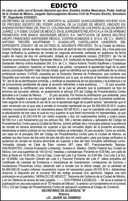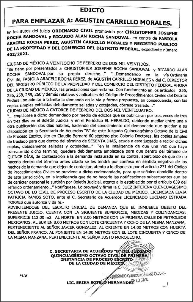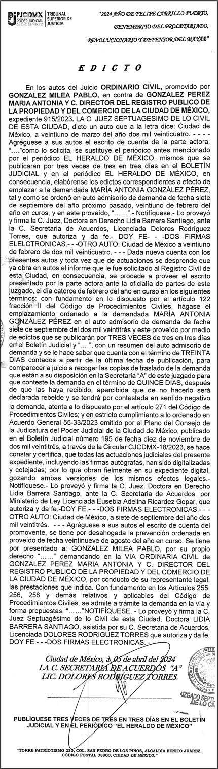 Diario El Heraldo de México. Editor responsable: Alfredo González Castro. Número de Certificado de Reserva otorgado por el Instituto Nacional del Derecho de Autor 04-2009060419022100-101. Número de Certificado de Licitud de título y Contenido No.16921. Domicilio de la Publicación: Paseo de la Reforma No. 250, Piso 24, Colonia Juárez, Del. Cuauhtémoc, C.P. 06600, Ciudad de México. Impreso en Talleres de La Crónica Diaria , S.A. de C. V. Calzada Azcapotzalco La Villa No. 160 Barrio San Marcos Alcaldia Azcapotzalco, CP 02020 Publicación Diaria. Todos los derechos están reservados. Queda estrictamente prohibida la reproducción total o parcial de los contenidos e imágenes de esta publicación sin previa autorización de El Heraldo de México. El contenido de los artículos es responsabilidad exclusiva de los autores.