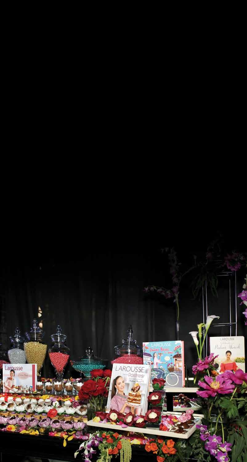 mesa de postres sorpresa que se había ocultado celosamente de los comensales. Perfectamente decorada con flores de colores brillantes y aromas suaves, la mesa seguía una línea cronológica por cada uno de los libros que la chef ha compartido a través de los años. Petit fours, bombones, fresas cubiertas y pasteles miniatura son apenas algunas de las maravillas que se disfrutaron en esta celebración, un reflejo del amor y dedicación de Paulina Abascal hacia su arte culinario y su deseo de compartirlo con el mundo.