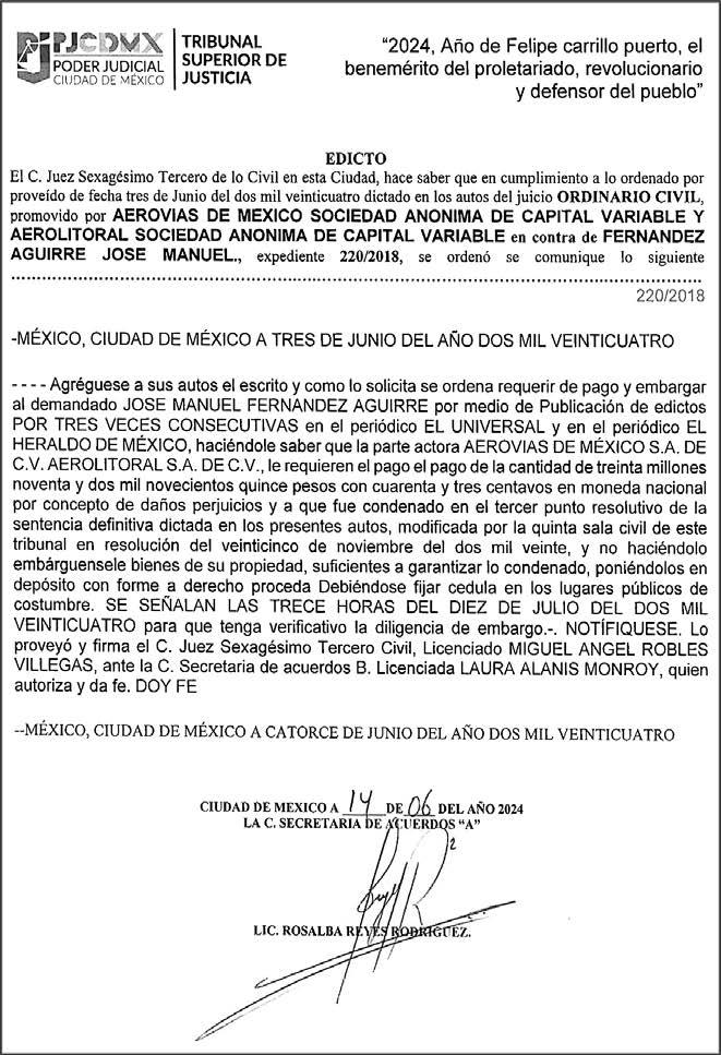 Esto, en vista de que el artículo 167 de la Ley Orgánica del Poder Judicial de la Fede-