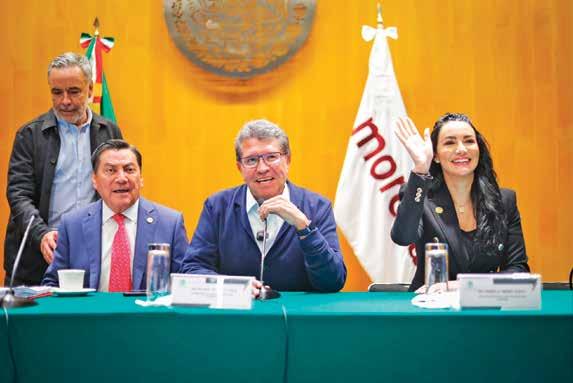 l FIRME. La bancada de Morena, liderada por Monreal llevó a cabo una reunión previa al debate.