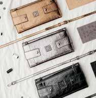 l BILLETERA CROSSBODY: con asas largas desprendibles, en plata, bronce y negro.