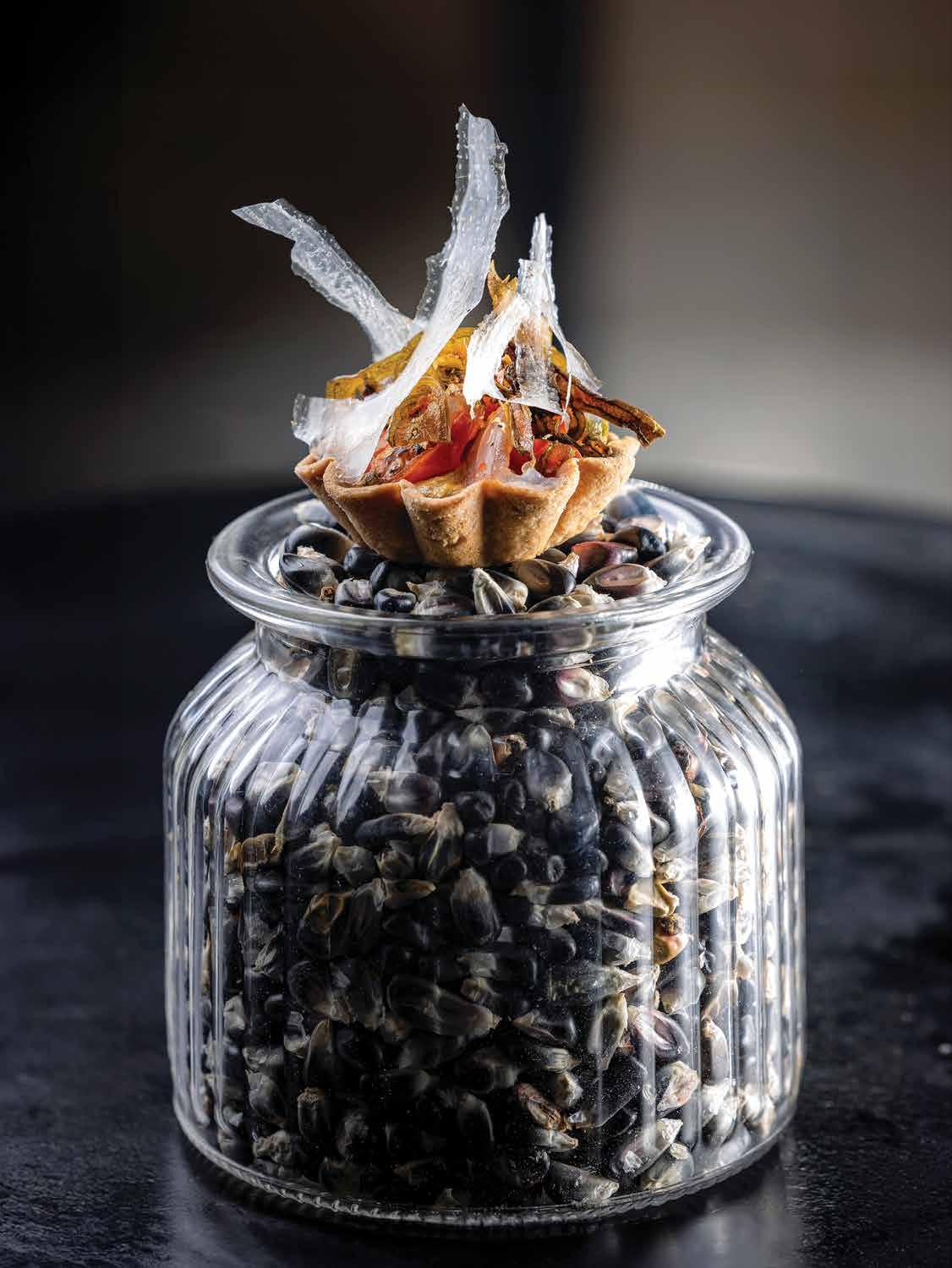 Enrique Hernández, chef del res taurante Komunal, explora los in gredientes locales para mostrarlos al mundo, en una propuesta de alta cocina con sello colimense. Es increíble pensar que en uno de los cinco estados más peque ños de México puedan converger diversos ecosistemas. Esta biodi vesidad ha hecho de Colima uno de los productores más importantes de ingredientes que se emplean en la cotidianidad, como el limón, coco y la flor de sal de Cuyutlán.