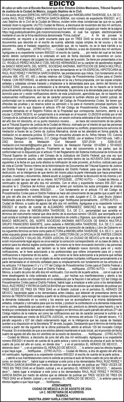 Periódico El Heraldo de México. Editor Responsable: Alfredo González Castro, Número de Certificado de Reserva otorgado por el Instituto Nacional del Derecho de Autor: 04-2009-060419022100-101. Número de Certificado de Licitud de Título y Contenido: 16921. Domicilio de la Publicación: Av. Insurgentes Sur, No. 1271, piso 2, oficina 202, Extremadura Insurgentes, Benito Juárez, C.P. 03740. Impreso en LA CRÓNICA DIARIA, SA DE CV, Avenida Azcapotzalco La Villa 160, Colonia San Marcos, Alcaldía Azcapotzalco, Ciudad de México, CP 02020. Distribuidores: ARREDONDO E HIJOS DISTRIBUIDORA, SA de CV, Iturbide 18 local D, Colonia Centro de la Ciudad de México Área 4, Alcaldía Cuauhtémoc, Ciudad de México, CP 06040. ELIZABETH IVONNE GUTIÉRREZ ORTIZ, Callejón 2o de la Luz 52, Departamento 4, Interior 1, Colonia Anáhuac II Sección, Alcaldía Miguel Hidalgo, Ciudad de México, CP 11320. AEROVÍAS EMPRESA DE CARGO, SA de CV, Paseo de la Reforma 445, Piso 9, Colonia Cuauhtémoc, alcaldía Cuauhtémoc, Ciudad de México, CP 06000 Publicación Diaria No. 2659, Martes 24 de septiembre de 2024.