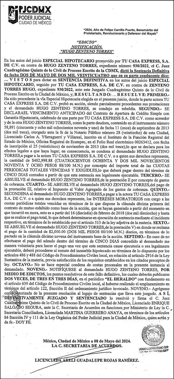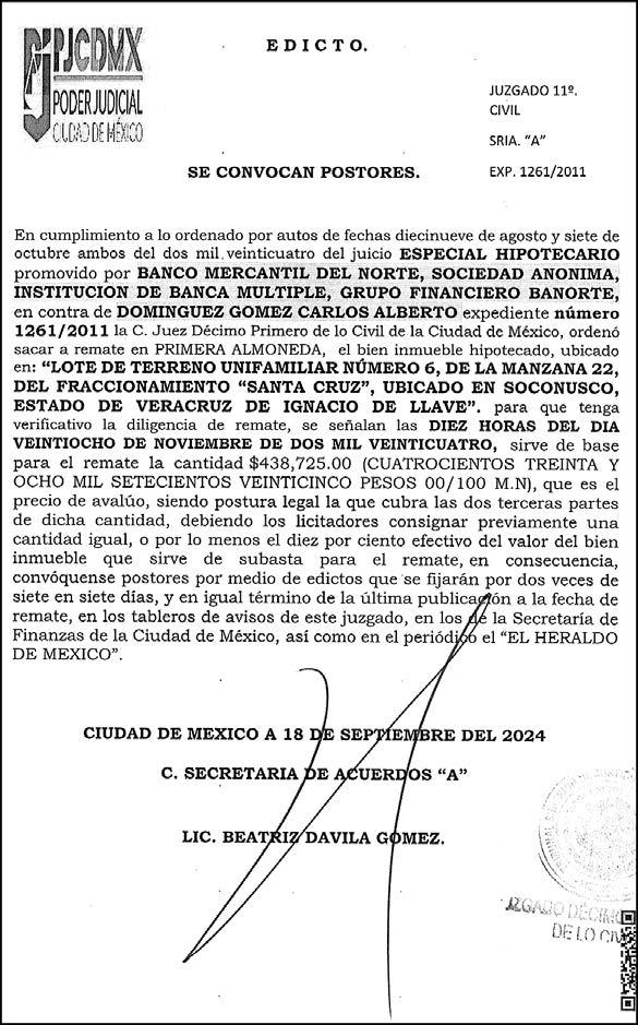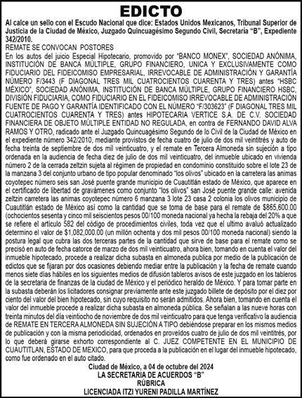 Periódico El Heraldo de México. Editor Responsable: Alfredo González Castro, Número de Certificado de Reserva otorgado por el Instituto Nacional del Derecho de Autor: 04-2009-060419022100-101. Número de Certificado de Licitud de Título y Contenido: 16921. Domicilio de la Publicación: Av. Insurgentes Sur, No. 1271, piso 2, oficina 202, Extremadura Insurgentes, Benito Juárez, C.P. 03740. Impreso en LA CRÓNICA DIARIA, SA DE CV, Avenida Azcapotzalco La Villa 160, Colonia San Marcos, Alcaldía Azcapotzalco, Ciudad de México, CP 02020. Distribuidores: ARREDONDO E HIJOS DISTRIBUIDORA, SA de CV, Iturbide 18 local D, Colonia Centro de la Ciudad de México Área 4, Alcaldía Cuauhtémoc, Ciudad de México, CP 06040. ELIZABETH IVONNE GUTIÉRREZ ORTIZ, Callejón 2o de la Luz 52, Departamento 4, Interior 1, Colonia Anáhuac II Sección, Alcaldía Miguel Hidalgo, Ciudad de México, CP 11320. AEROVÍAS EMPRESA DE CARGO, SA de CV, Paseo de la Reforma 445, Piso 9, Colonia Cuauhtémoc, alcaldía Cuauhtémoc, Ciudad de México, CP 06000 Publicación Diaria No. 2701, martes 5 de noviembre de 2024. EL