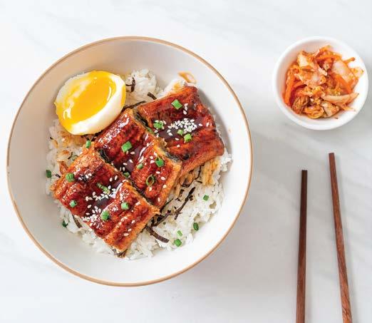 l Este plato se conformade arroz con ingredientes adicionales que pueden ser cerdo, carne de res, pollo, pescado y, entre los ingredientes más icónicos, la anguila.