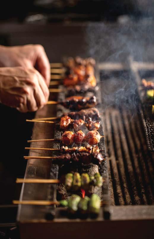 El yakitori –cuya palabra significa “pájaro asado a la parrilla”– se refiere a una pequeña brocheta que puede ser de pollo, carne, cerdo, mariscos o vegetales, cuyo sabor recae en la calidad de los ingredientes y su cocción al carbón.