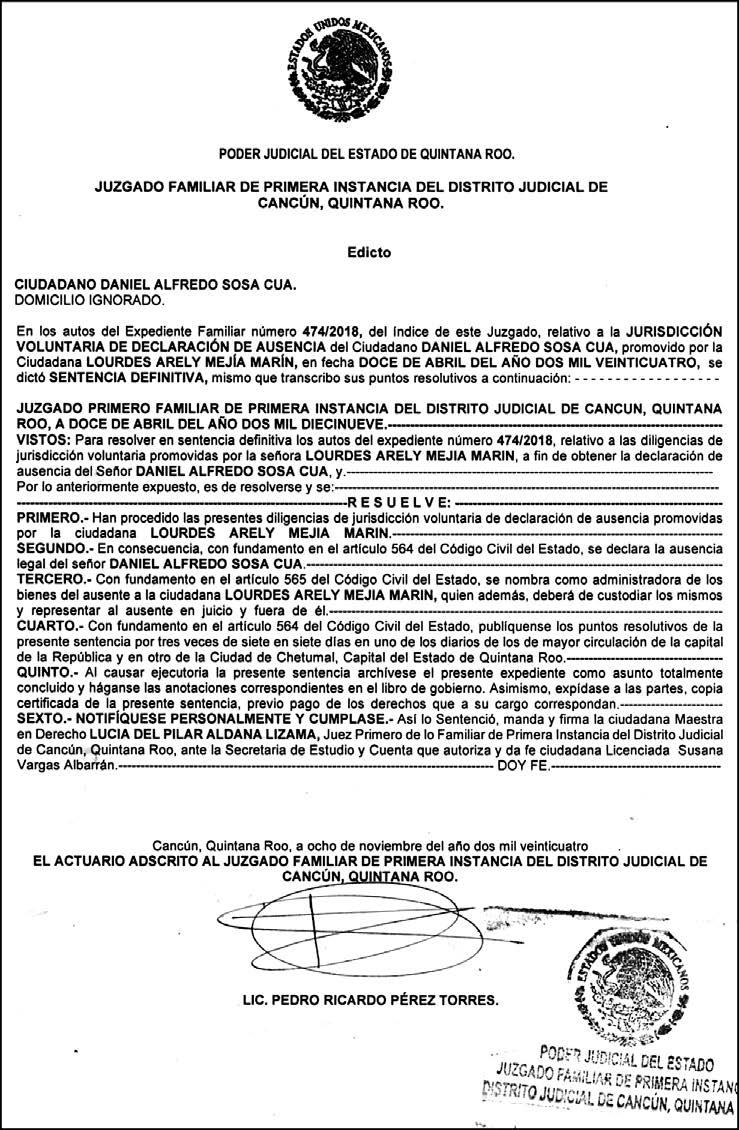 Es un hombre de principios sólidos, de carácter amable y de convicciones inquebrantables, con una vida dedicada al servicio público en el Poder Judicial, concluyó. PAIS@ELHERALDODEMEXICO.COM