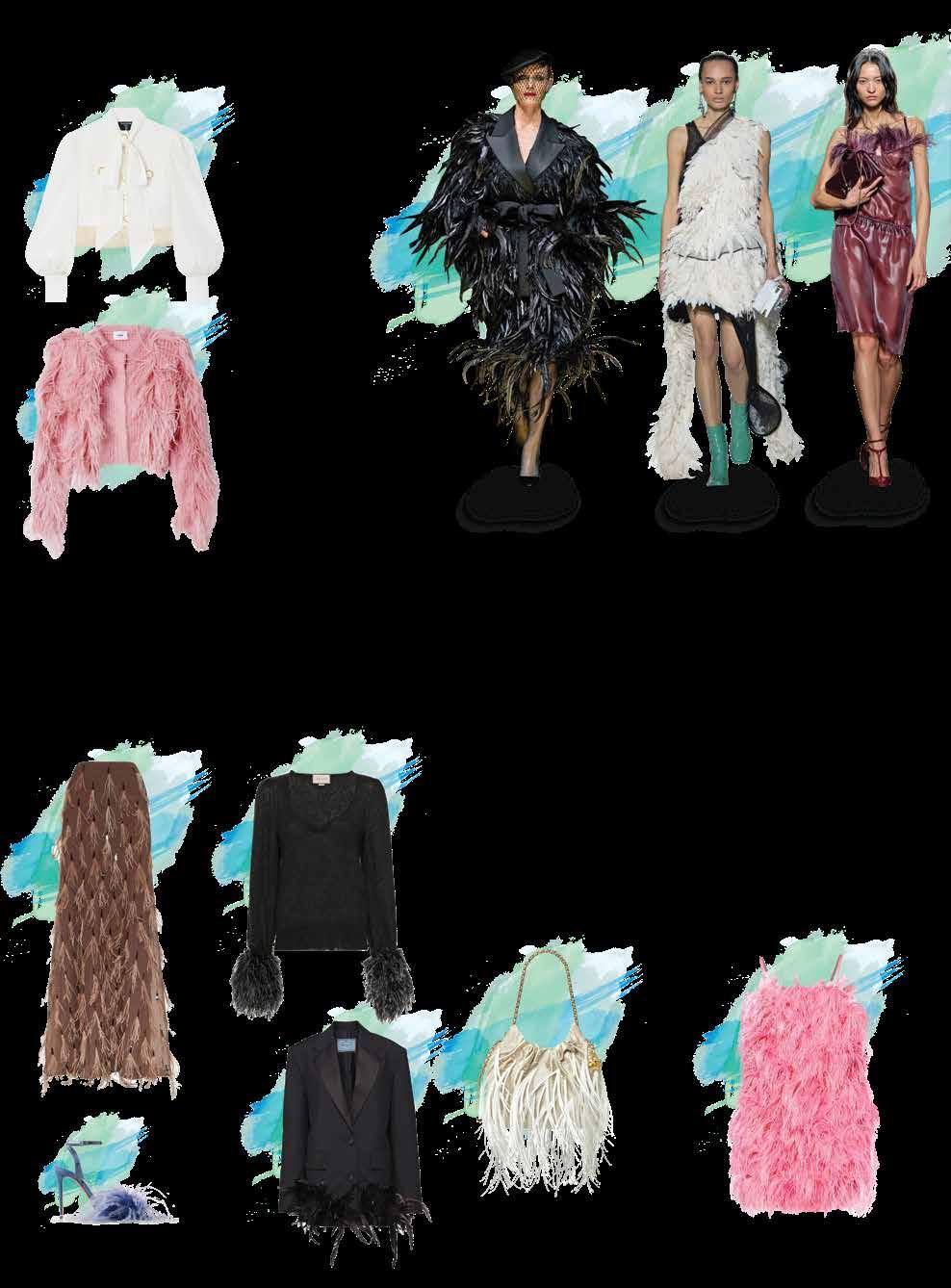l Las plumas le dan dinamismo a una prenda. Apuesta por llevarlas para algún evento especial de noche o bien puede ser un toque para alguna prenda casual como un suéter o blazer con jeans.