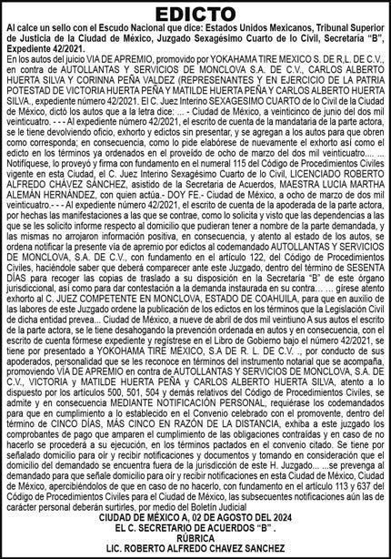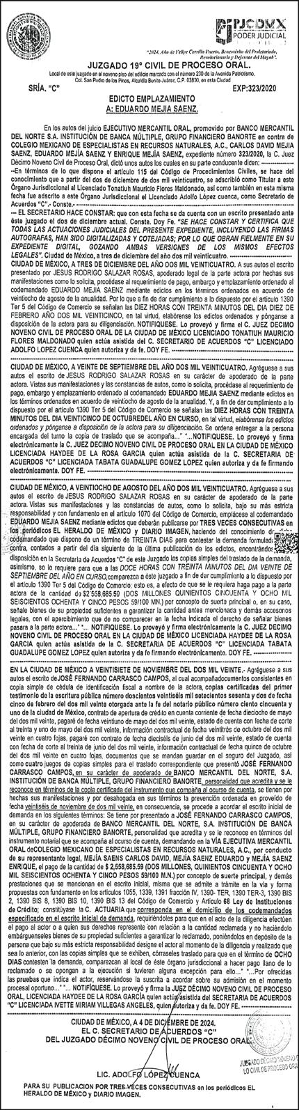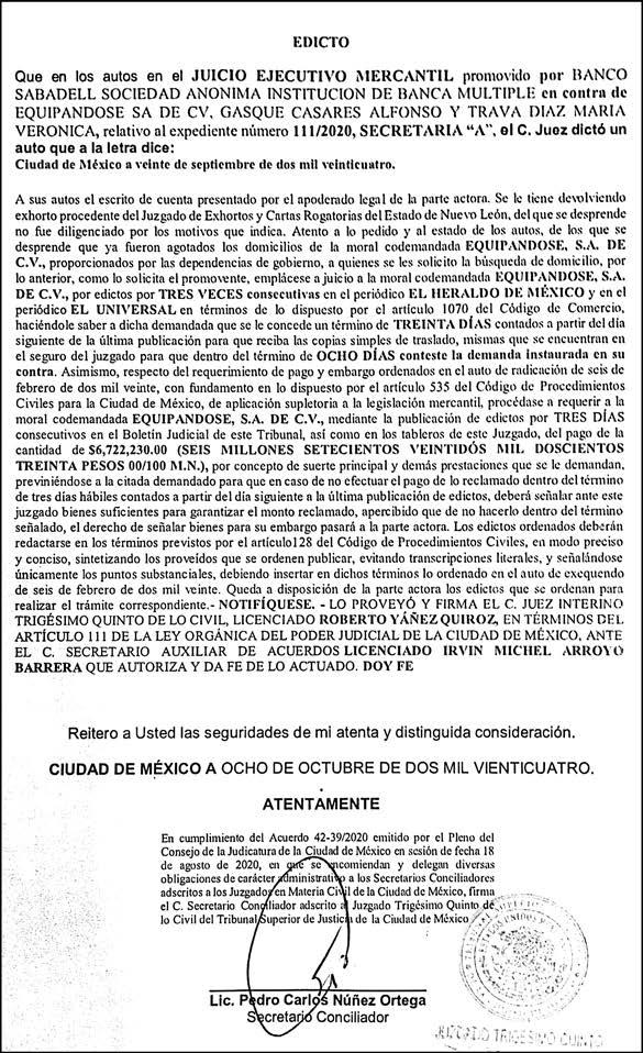 DIRECTOR GENERAL Periódico El Heraldo de México. Editor Responsable: Alfredo González Castro, Número de Certificado de Reserva otorgado por el Instituto Nacional del Derecho de Autor: 04-2009-060419022100-101. Número de Certificado de Licitud de Título y Contenido: 16921. Domicilio de la Publicación: Av. Insurgentes Sur, No. 1271, piso 2, oficina 202, Extremadura Insurgentes, Benito Juárez, C.P. 03740. Impreso en LA CRÓNICA DIARIA, SA DE CV, Avenida Azcapotzalco La Villa 160, Colonia San Marcos, Alcaldía Azcapotzalco, Ciudad de México, CP 02020. Distribuidores: ARREDONDO E HIJOS DISTRIBUIDORA, SA de CV, Iturbide 18 local D, Colonia Centro de la Ciudad de México Área 4, Alcaldía Cuauhtémoc, Ciudad de México, CP 06040. ELIZABETH IVONNE GUTIÉRREZ ORTIZ, Callejón 2o de la Luz 52, Departamento 4, Interior 1, Colonia Anáhuac II Sección, Alcaldía Miguel Hidalgo, Ciudad de México, CP 11320. AEROVÍAS EMPRESA DE CARGO, SA de CV, Paseo de la Reforma 445, Piso 9, Colonia Cuauhtémoc, alcaldía Cuauhtémoc, Ciudad de México, CP 06000 Publicación Diaria No. 2782, lunes 27 de enero de 2025. EL HERALDO DE