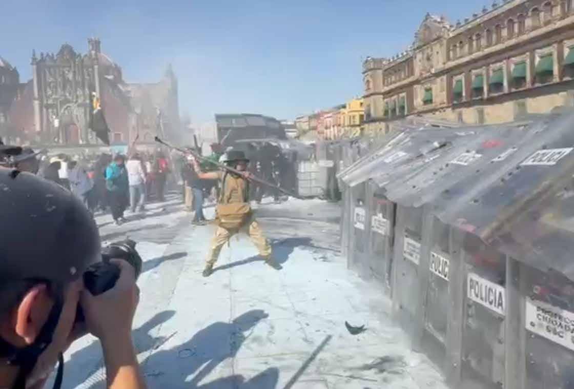 En la Ciudad de México, donde se concentraron 17 mil asistentes, de acuerdo con cifras del gobierno capitalino, la protesta avanzó de manera pacífica durante varias horas. No obstante, esto cambió cuando personas encapuchadas ingresaron al Zócalo y derribaron las vallas colocadas alrededor de Palacio Nacional utilizando martillos, cadenas, alicates y proyectiles explosivos.