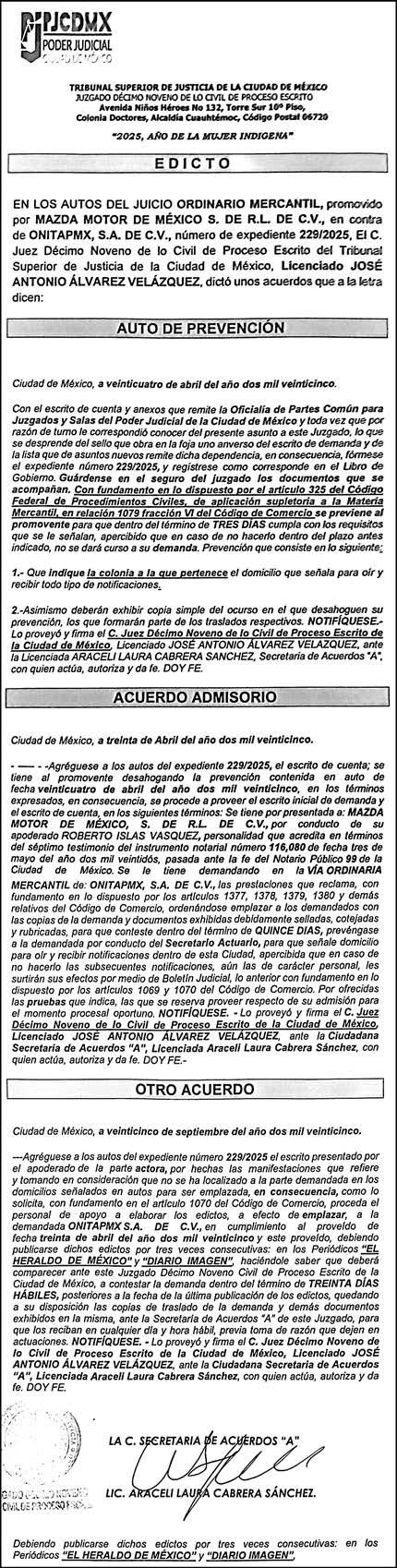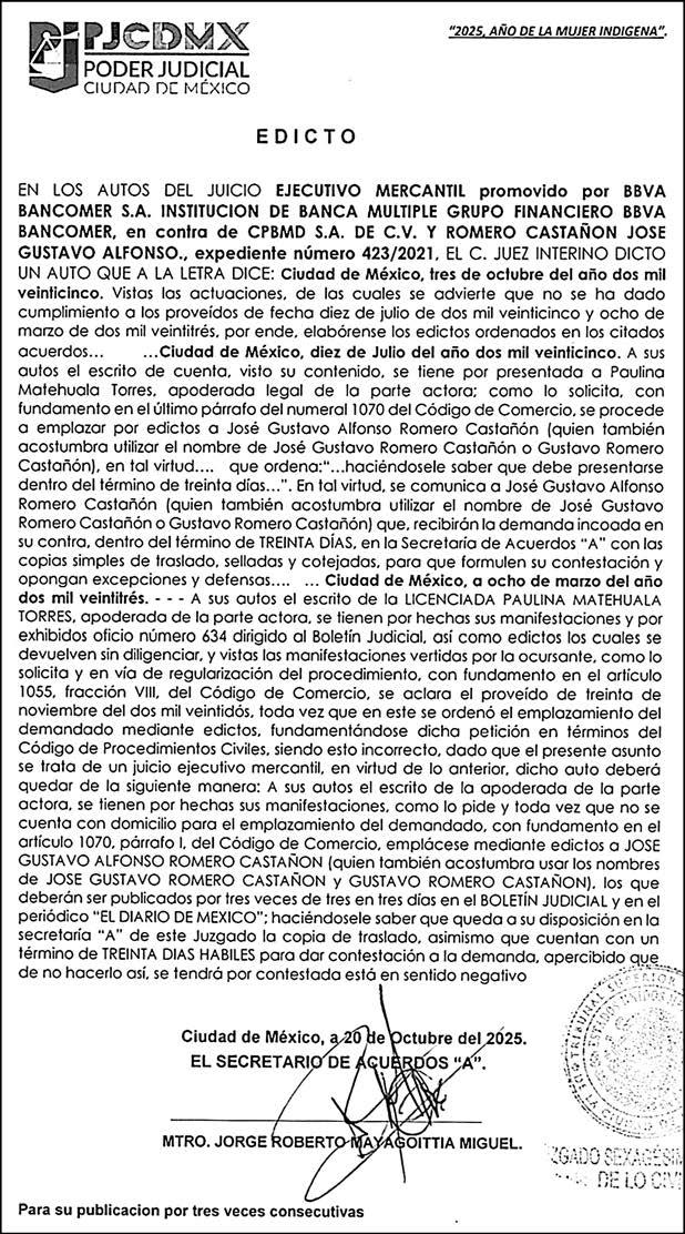 INFORMACIÓN Y EDITORIAL SA de CV, Avenida Insurgentes Sur 1271, Piso 2, Oficina 202, Colonia Extremadura Insurgentes, Alcaldía Benito Juárez, CP 03740. Editor Responsable; ALFREDO GONZÁLEZ CASTRO Reserva de Derechos al Uso Exclusivo: 04-2009-060419022100-101 Certificado de Licitud de Titulo y Contenido: 16,921 Actualización del Registro en el Padrón Nacional de Medios Impresos de la Secretaría de Gobernación: 2 de octubre de 2024. Impreso por: LA CRÓNICA DIARIA, SA DE CV Avenida Azcapotzalco La Villa 180, Colonia San Marcos, Alcaldía Azcapotzalco, Ciudad de México, CP 02020. Distribuidores: ARREDONDO E HIJOS DISTRIBUIDORA, SA de CV Iturbide 18 local D, Colonia Centro de la Ciudad de México Área 4, Alcaldía Cuauhtémoc, Ciudad de México, CP 06040. OMAR GUTIÉRREZ RIVERO Calle Lago Chiem