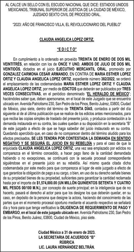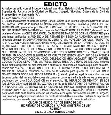 Diario El Heraldo de México. Editor responsable: Alfredo González Castro. Número de Certificado de Reserva otorgado por el Instituto Nacional del Derecho de Autor 04-2009-060419022100-101. Número de Certificado de Licitud de título y Contenido No.16921. Domicilio de la Publicación: Paseo de la Reforma No. 250, Piso 24, Colonia Juárez, Del. Cuauhtémoc, C.P. 06600, Ciudad de México. Imprenta: Impreso en Talleres de La Crónica Diaria , S.A. de C. V. Calzada Azcapotzalco La Villa No. 160 , Barrio San Marcos Alcaldia Azcapotzalco, CP 02020. Publicación Diaria. Todos los derechos están reservados. Queda estrictamente prohibida la reproducción total o parcial de los contenidos e imágenes de esta publicación sin previa autorización de El Heraldo de México. El contenido de los artículos es responsabilidad exclusiva de los autores.