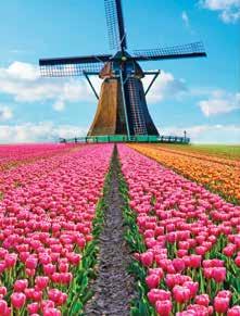 Desde la temporada de azafrán, en marzo, al florecimiento de los famosos tulipanes que usualmente se extiende hasta mediados de mayo, los paisajes de los Países Bajos se transforman en una extravagancia multicolor tapizada por jardines, como el Keukenhof, que cuenta con más de siete millones de estas flores.