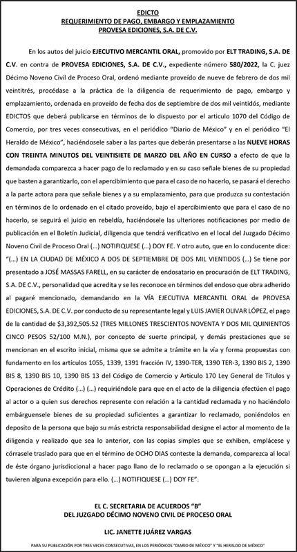 Editor responsable: Alfredo González Castro. Número de Certificado de Reserva otorgado por el Instituto Nacional del Derecho de Autor 04-2009060419022100-101. Número de Certificado de Licitud de título y Contenido No.16921. Domicilio de la Publicación: Paseo de la Reforma No. 250, Piso 24, Colonia Juárez, Del. Cuauhtémoc, C.P. 06600, Ciudad de México. Impreso en Talleres de La Crónica Diaria S.A. de C. V. Calzada Azcapotzalco La Villa No. 160 Barrio San Marcos Alcaldia Azcapotzalco, CP 02020 Publicación Diaria. Todos los derechos están reservados. Queda estrictamente prohibida la reproducción total o parcial de los contenidos e imágenes de esta publicación sin previa autorización de El Heraldo de México. El contenido de los artículos es responsabilidad exclusiva de los autores.