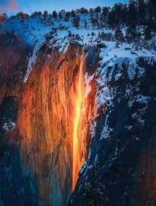 Entre octubre y febrero, El Capitán, una formación rocosa de granito en el Parque Nacional Yosemite, en California –uno de los destinos de escalada más famosos en el continente– atrae a miles de fotógrafos cuando el sol pega en la cara oriental de la cascada produciendo un efecto de “lluvia de fuego”.